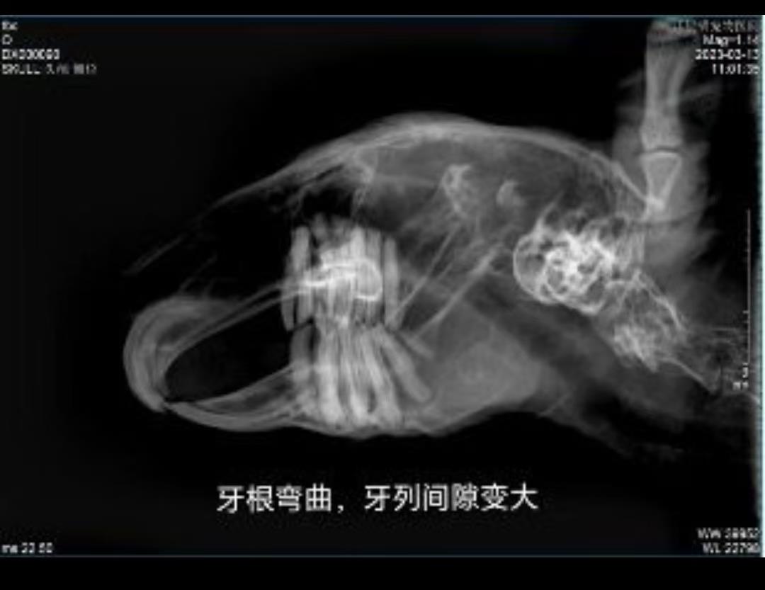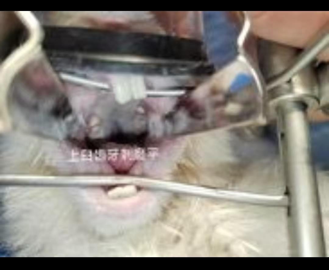 通过初步的检查,我们发现这只兔子有可能是得了获得性牙病。说到兔子牙病,可能很多人不太知道,其实兔子有一套与我们不同的牙齿系统,它们的牙齿会随着生长不断磨损。如果不注意,它们可能会因为牙齿过长或者形状不规则而影响正常进食哦!